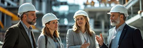 Experten besprechen Baustellenabläufe zur Sicherstellung von Effizienz, Sicherheit und Verlässlichkeit bei Großbauprojekten.